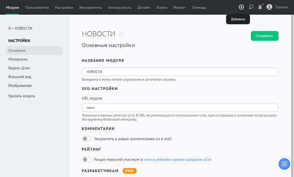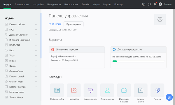 Интуитивно понятная современная панель управления uCoz в новом дизайне поможет в несколько кликов